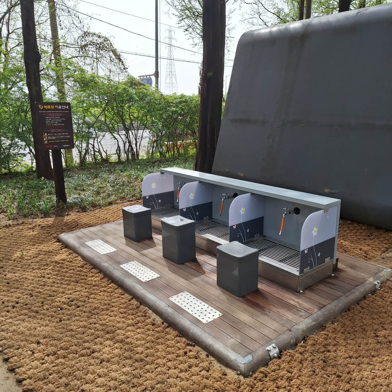 👣 맨발로 걷기하면 발이 지저분해지죠. 흙먼지를 털어내기만 한다면 조금은 불안해지는데요. 그렇다면, 맨발 걷기후 발을 씻을 수 있는 시설이 있다면 금상첨화일겁니다. 더불어 앉아서 쉴 수 있는 벤치라던가 화장실도 있어야 하구요.